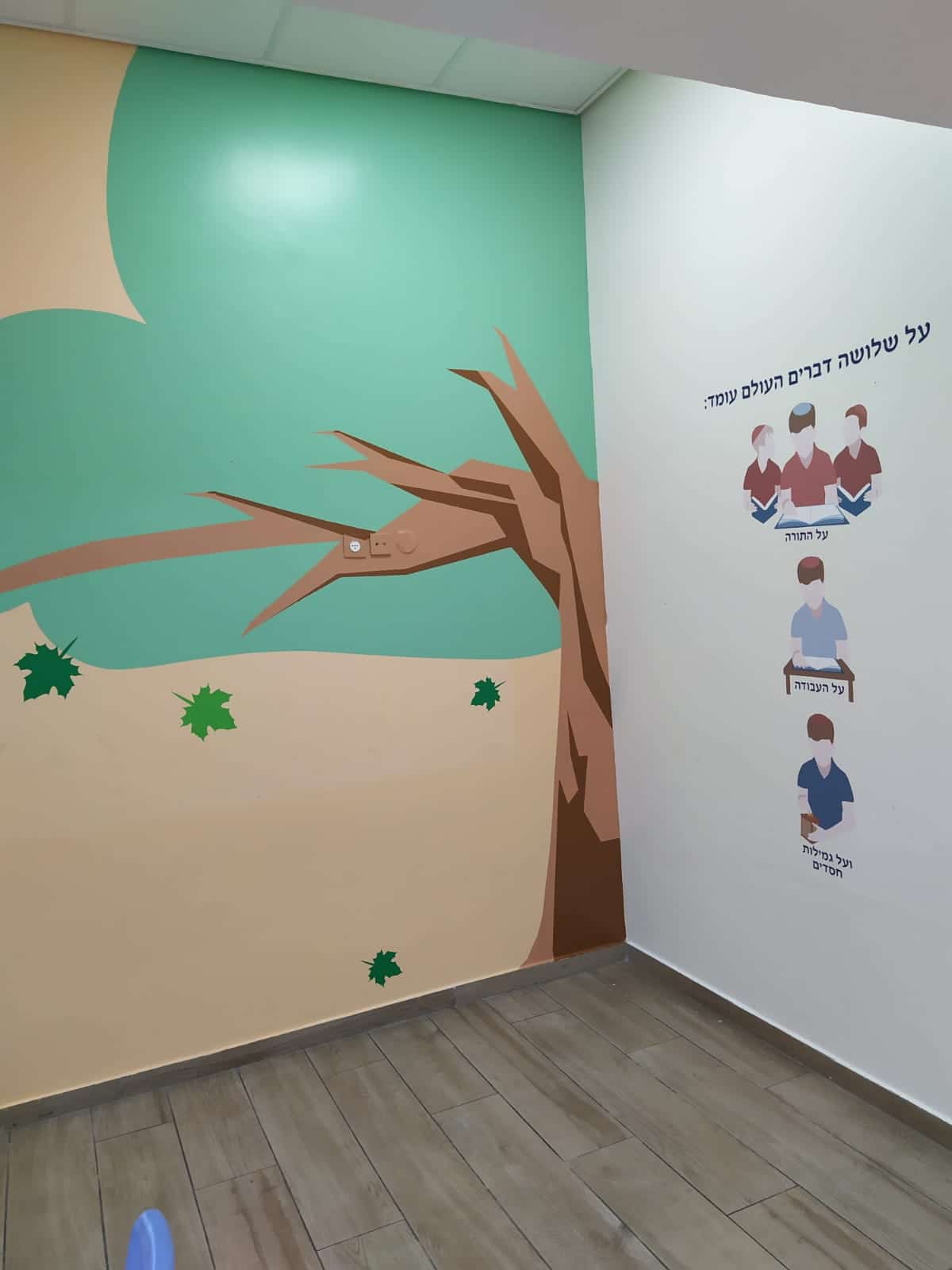 עיצוב גרמי מדרגות בישיבת נתיב מאיר, לוחות המתארים אירועים, אישים ותקופות חשובות מתקופת התנ"ך ועד היום